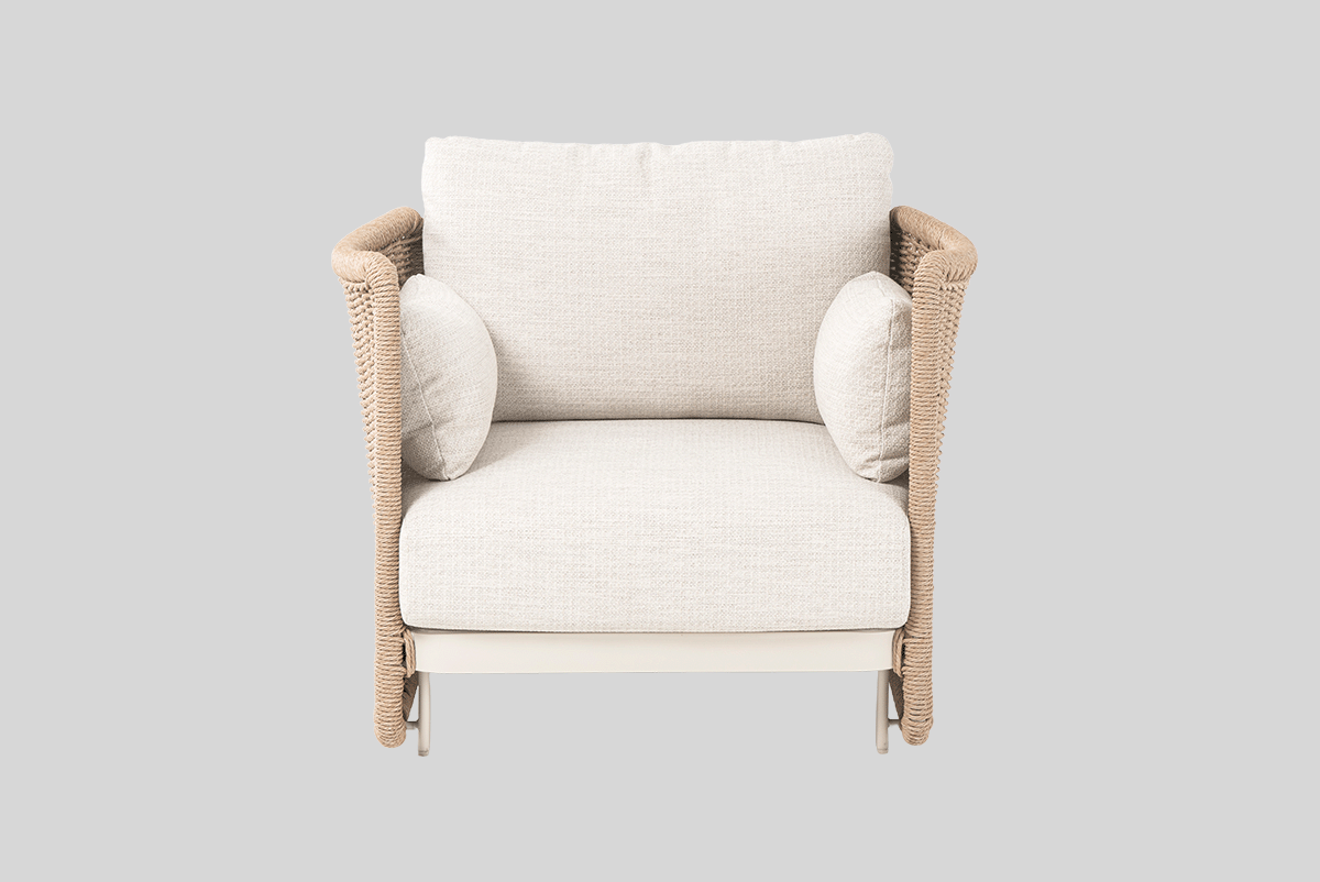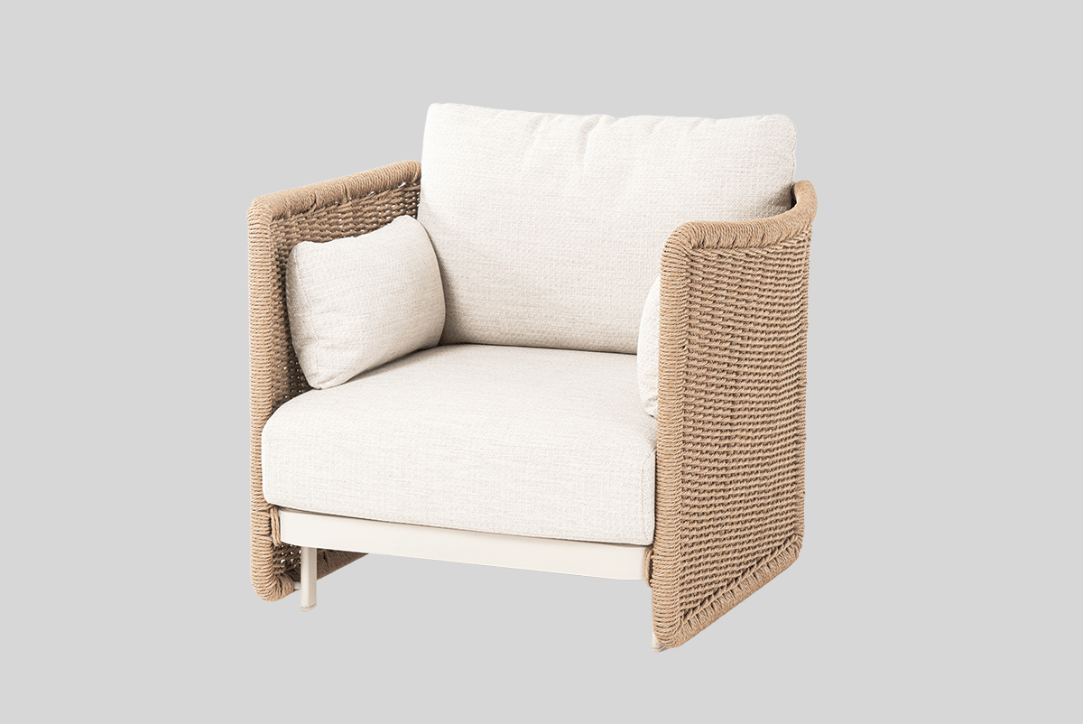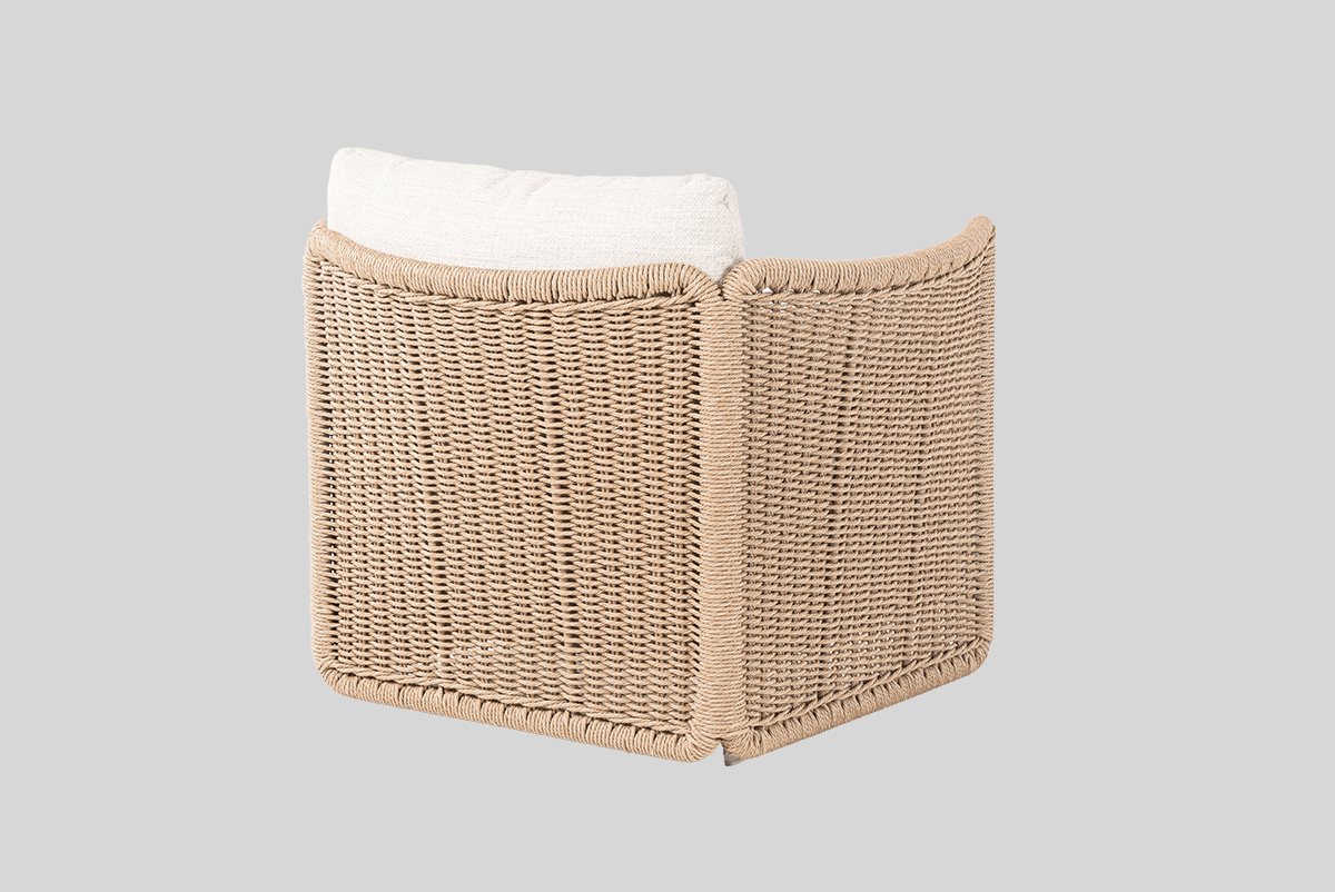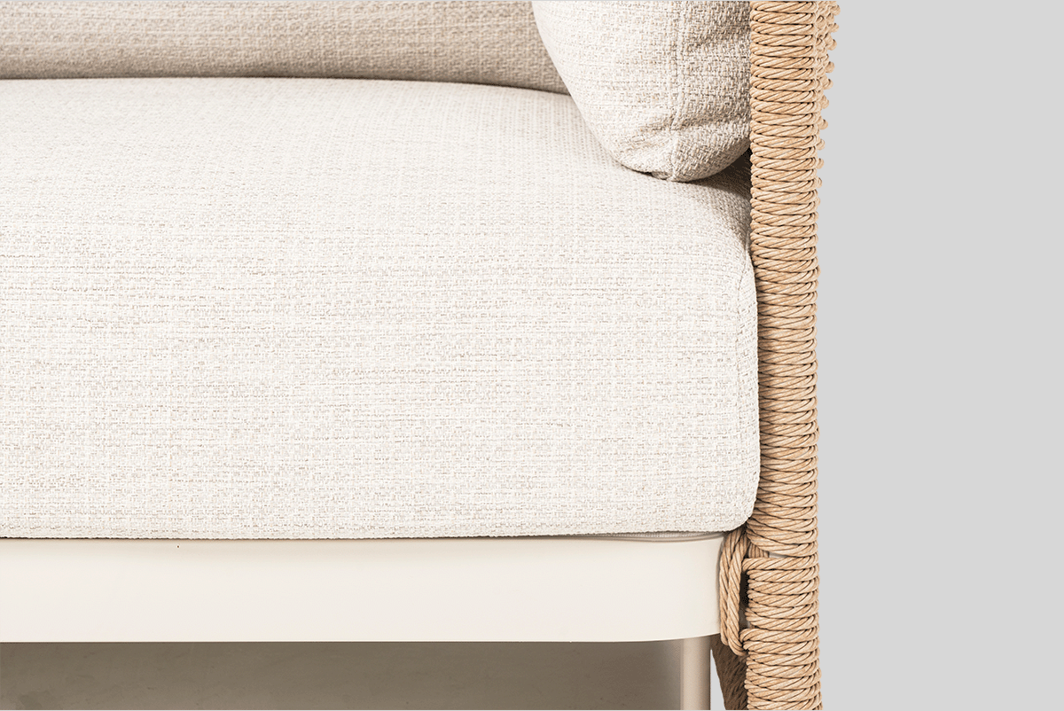 Tubo de aluminio con pintura en polvo y tejido de mimbre.