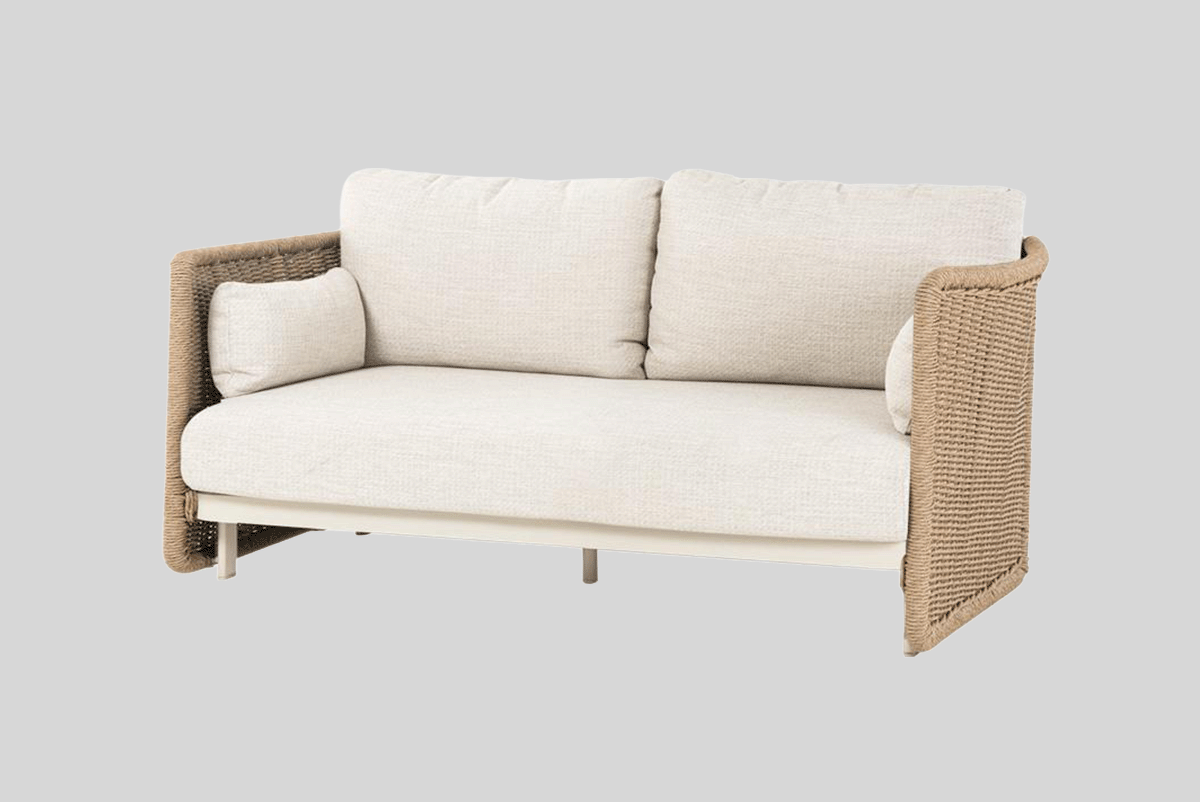 Tubo de aluminio con pintura en polvo y tejido de mimbre.