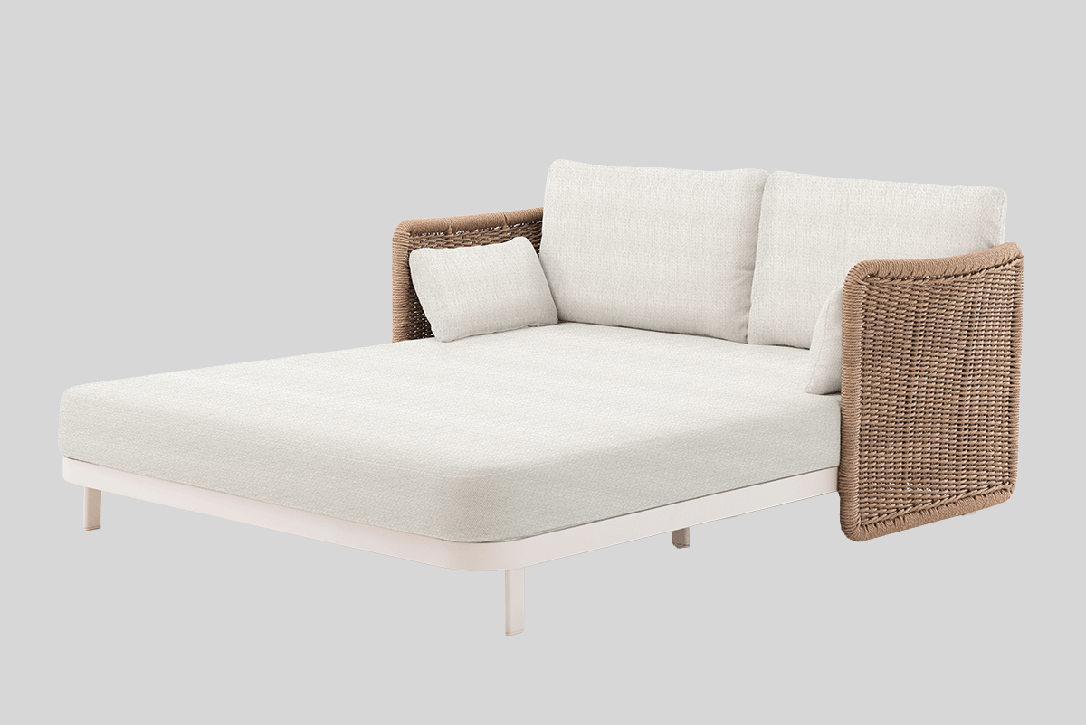 Tubo de aluminio con pintura en polvo y tejido de mimbre.